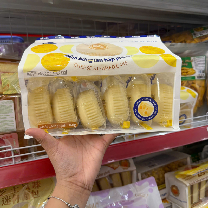 Bánh Bông Lan Hấp Phô Mai AXIQIN 360g (Bịch 10 Gói)
