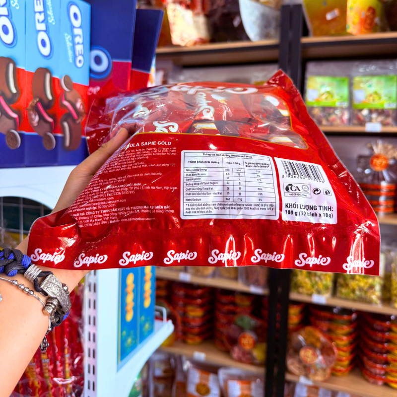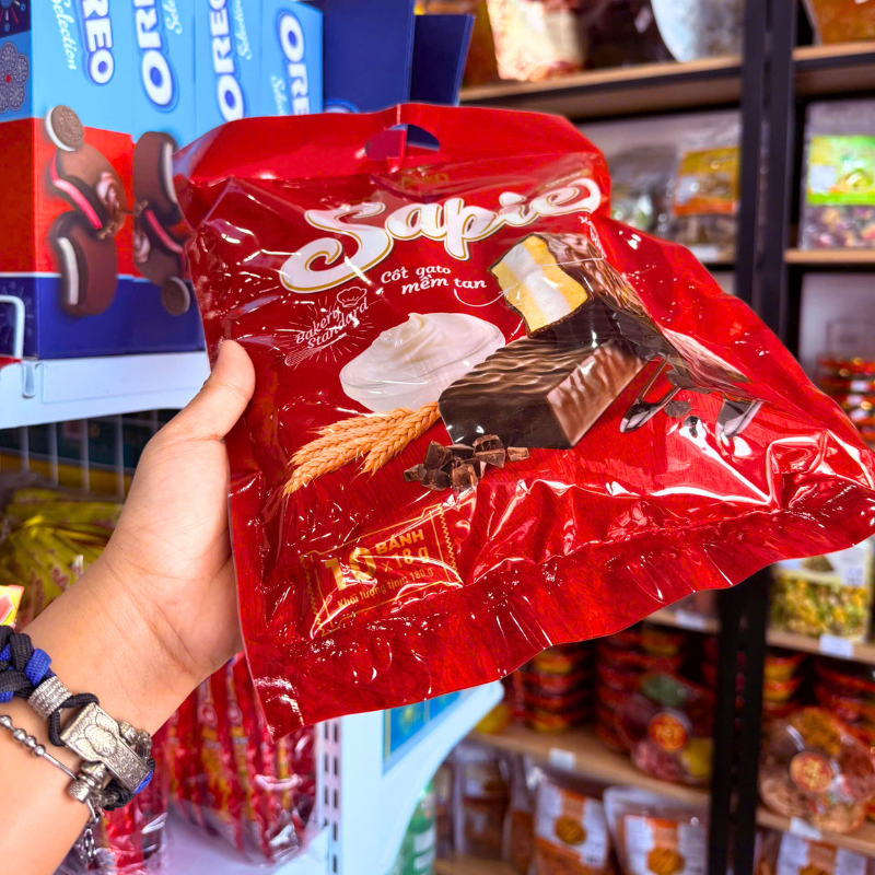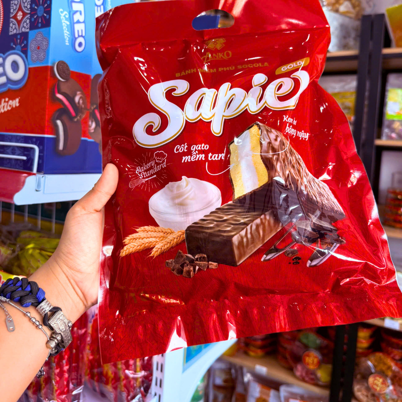 Bánh Bông Lan Phủ Socola SAPIE Gold Túi 180g (10 Bánh x 18g)