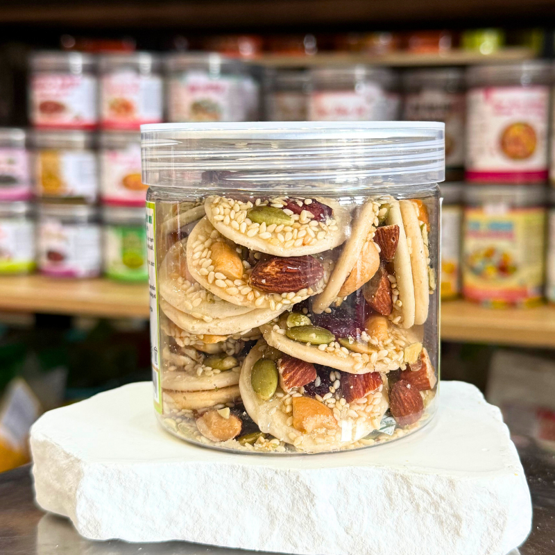 Thành Phần: Bột, hạt điều, hạt bí xanh, nam việt quất, mè trắng