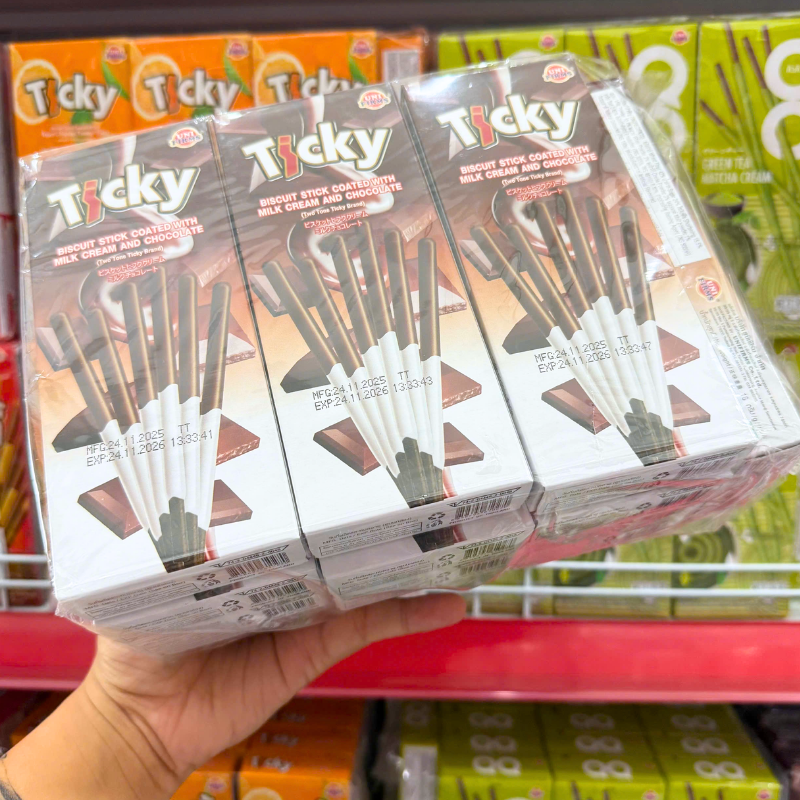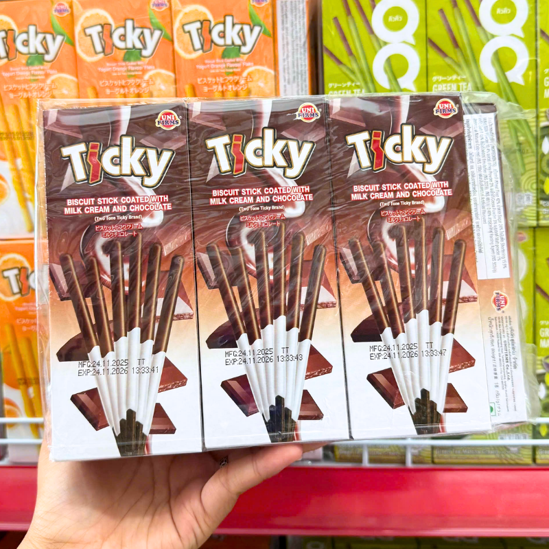 Bánh Que Đũa Phủ Socola Sữa Ticky Uni Firms Lốc 13 Hộp – Màu Nâu Trắng