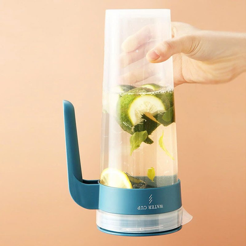 Thiết kế dạng hình trụ, cao có thể bỏ vừa 4 ly nhựa đi kèm, thuận tiện khi cần mang đi xa sử dụng.
