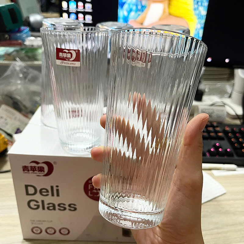 Bộ 6 Cốc Thủy Tinh Sọc Cao Sang Trong – Ly Thủy Tinh 333ml 14.3×7.4cm