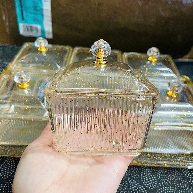 Bộ 6 Hộp Mứt – Khay Đựng Mứt Tết – Hũ Đựng Bánh Kẹo Hoa Quả Bằng Nhựa Kim Tuyến
