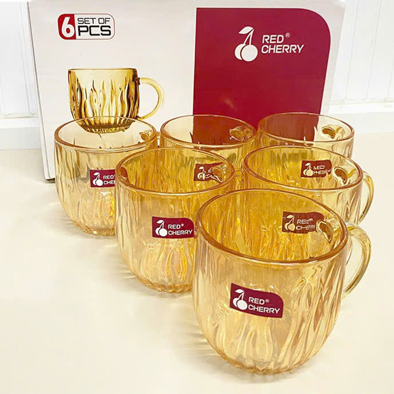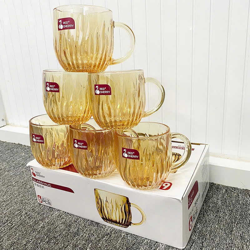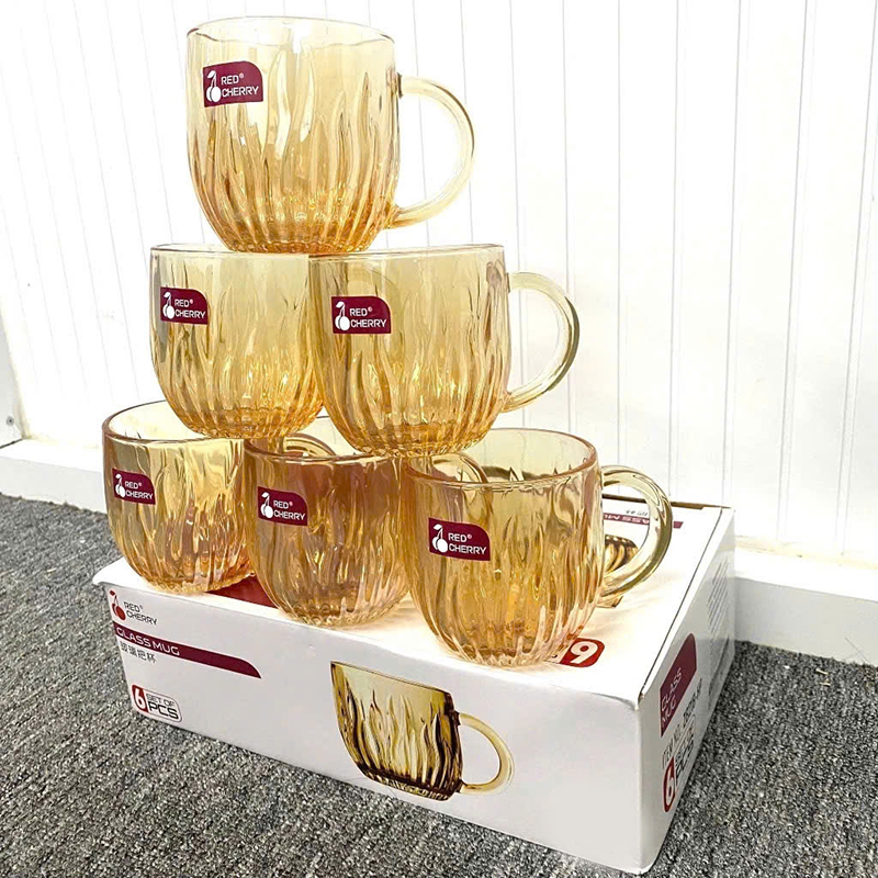 ❌❌Bộ 6 Ly thủy tinh vàng trà ZB21B chịu nhiệt uống nước dễ thương 260ml, cốc thủy tinh sang trọng RED CHERRY❌❌