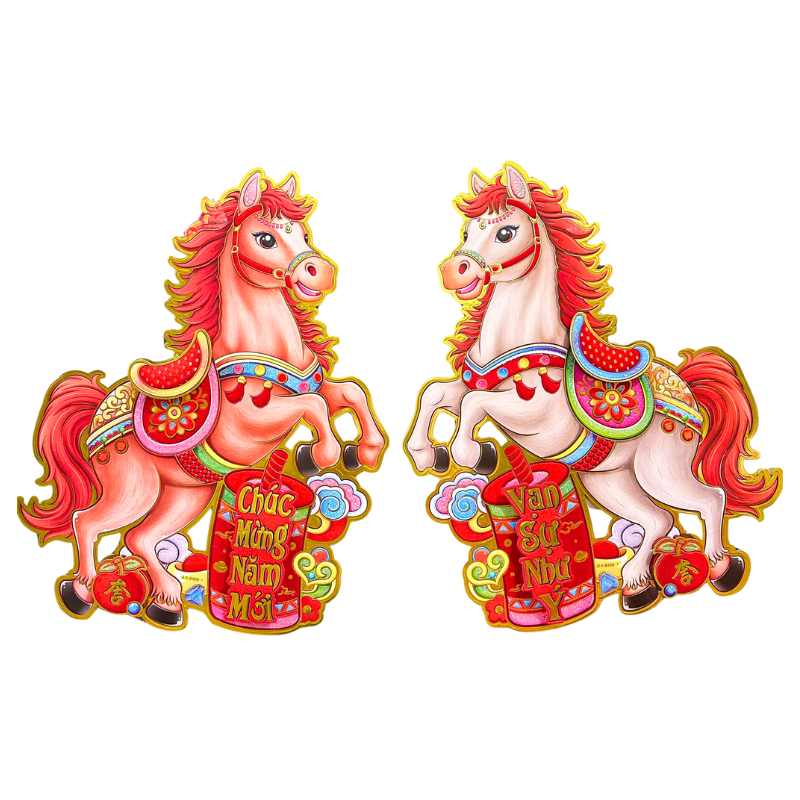 Cặp 2 Tranh Dán Cửa Ngựa - Tranh Dán Trang Trí Tết 40cm