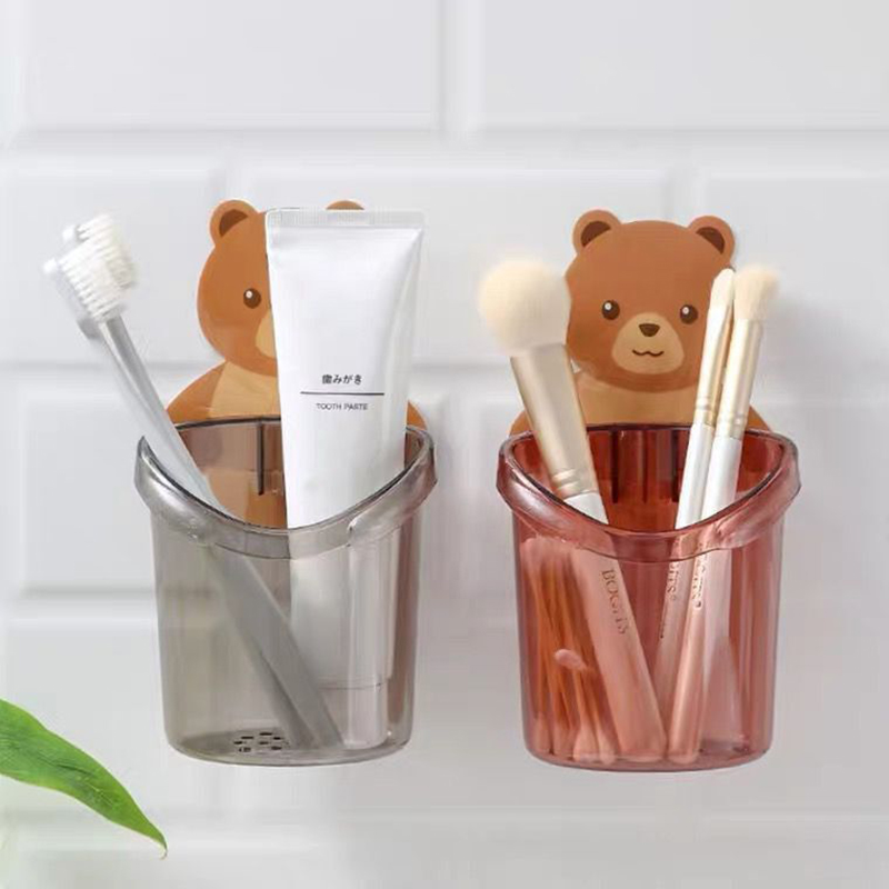 Combo 2 Cốc Dán Tường Hình Gấu – Cốc Đựng Kem Đánh Răng Dao Cạo Râu Cắm Bút 10.5x8x9.5cm