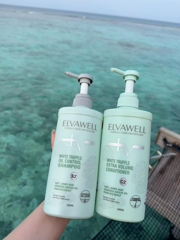 - Bước 1: Dùng Dầu Gội Elvawell: Làm ướt tóc với nước. Lấy một lượng dầu gội vừa đủ xoa đều lên tóc và da đầu. Masage nhẹ nhàng trong khoảng 2-3 phút. Rửa sạch bằng nước ấm.