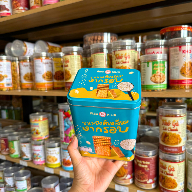 Giá sỉ bánh Quy Gạo Sữa Hộp Thiếc KILIN Thái Lan 400g – Hộp Xanh Dương Vàng