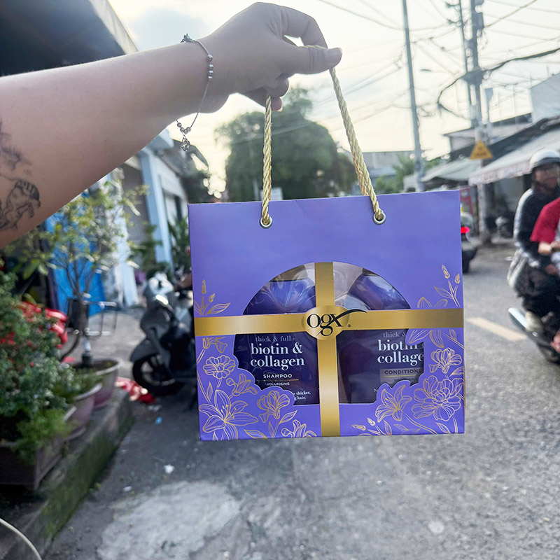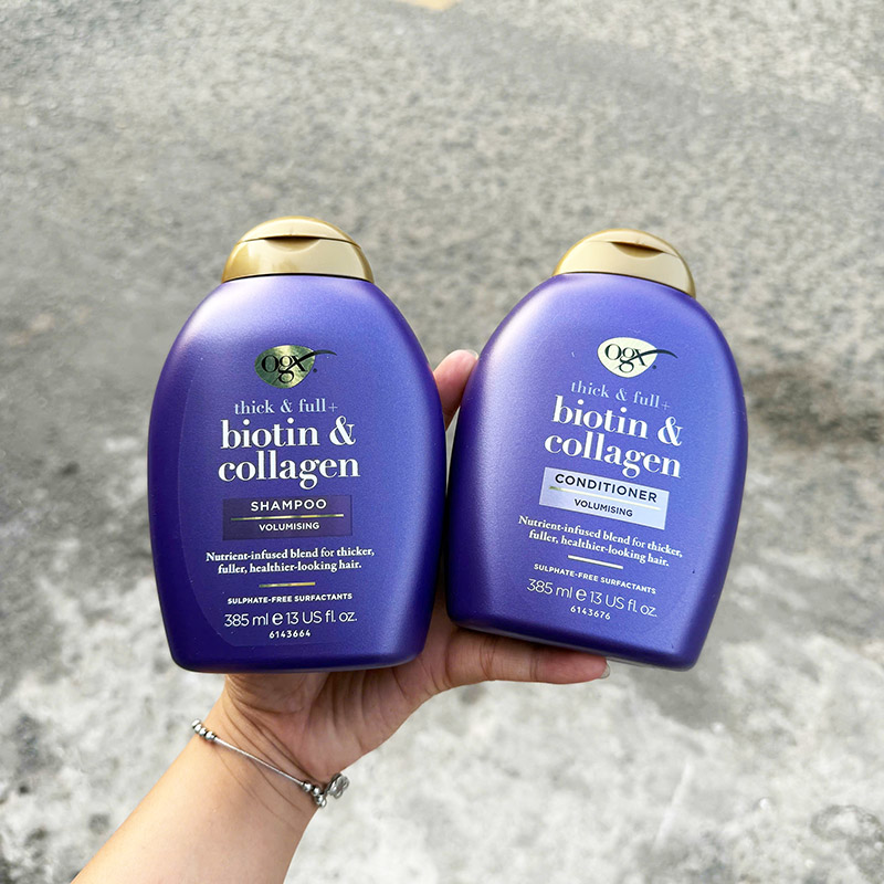 Giá sỉ bộ Dầu Gội Xả OGX Thick & Full + Biotin & Collagen Tím 385ml