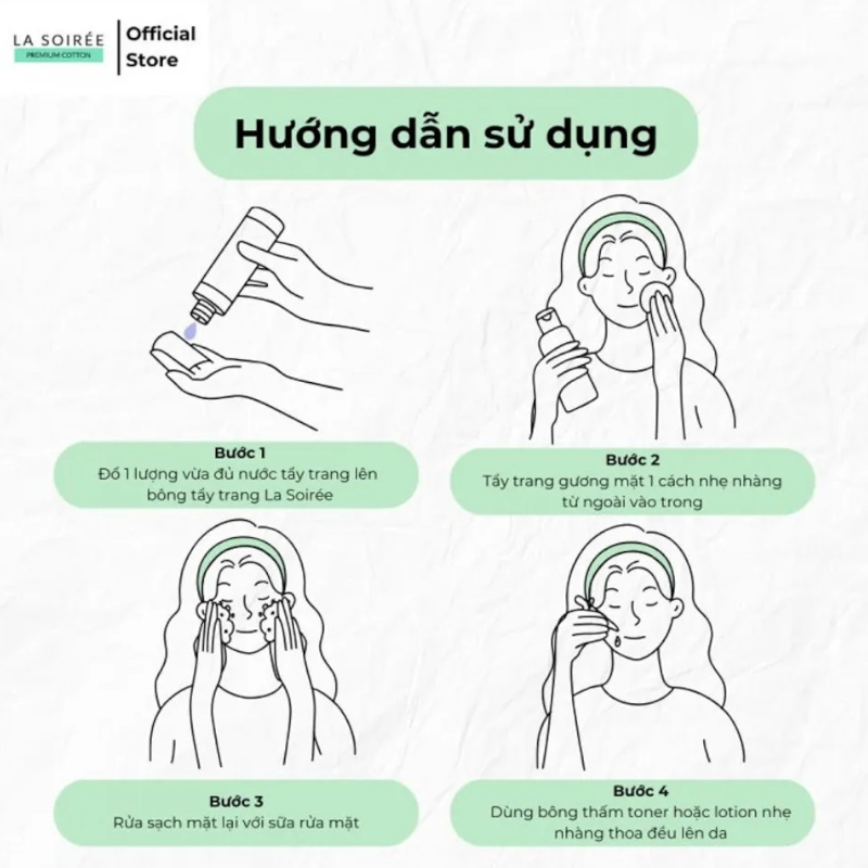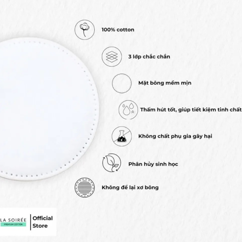 • Thiết kế: Túi đựng 225 miếng có dây rút tiện lợi, bảo quản bông tẩy trang vệ sinh.