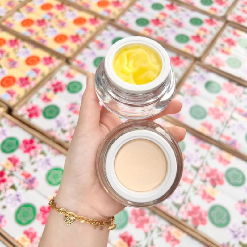 THÀNH PHẦN: Stearic Acid Cetyl Alconol, Glyceryl Monostearate, Triethanalamine, Propyl Glycol, Fluorescein, Perfume Vitamin E, Yoyumin, Cress, Wild Camonile Aloe, Water.