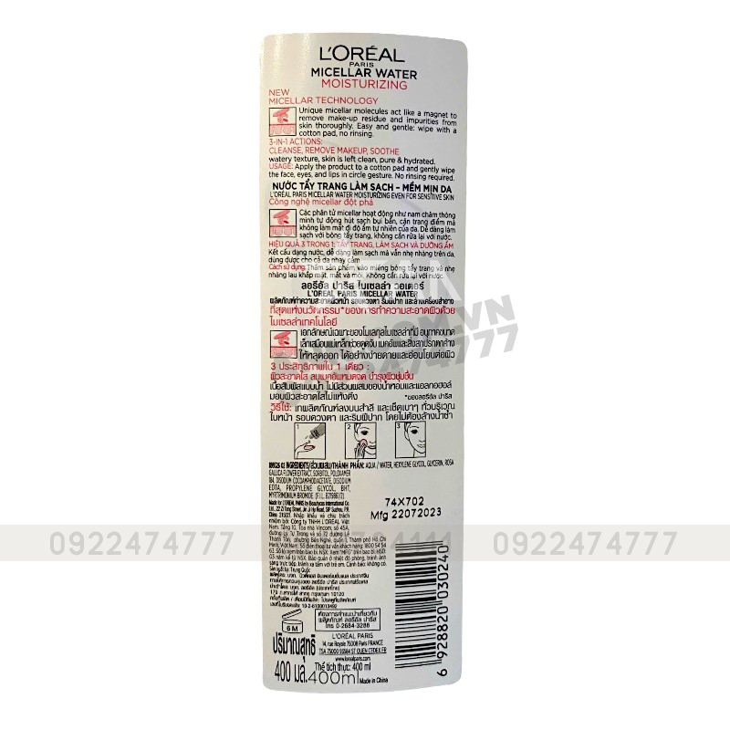 Giá sỉ nước Tẩy Trang Loreal Paris Màu Hồng Dưỡng Ẩm Micellar Water Moisturing 400ml