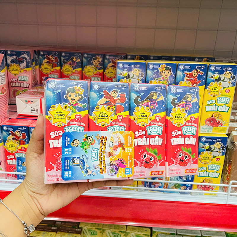 Giá sỉ sữa Dinh Dưỡng Trái Cây KUN Hương Dâu Lốc 4 Hộp – (180ml/Hộp)