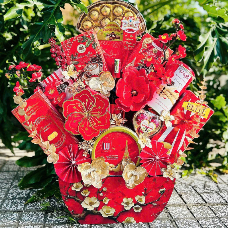 Giữa sắc mai vàng và đào thắm, những chiếc khay quà rực rỡ trở thành lời chúc đẹp nhất: chúc bình an – chúc tài lộc – chúc cả năm sung túc. Mỗi món trong set là một hương vị Tết, vừa quen vừa mới, vừa sang vừa ý nghĩa… nhìn là muốn tặng ngay 🎁✨