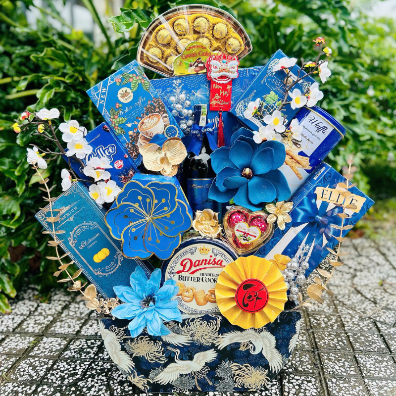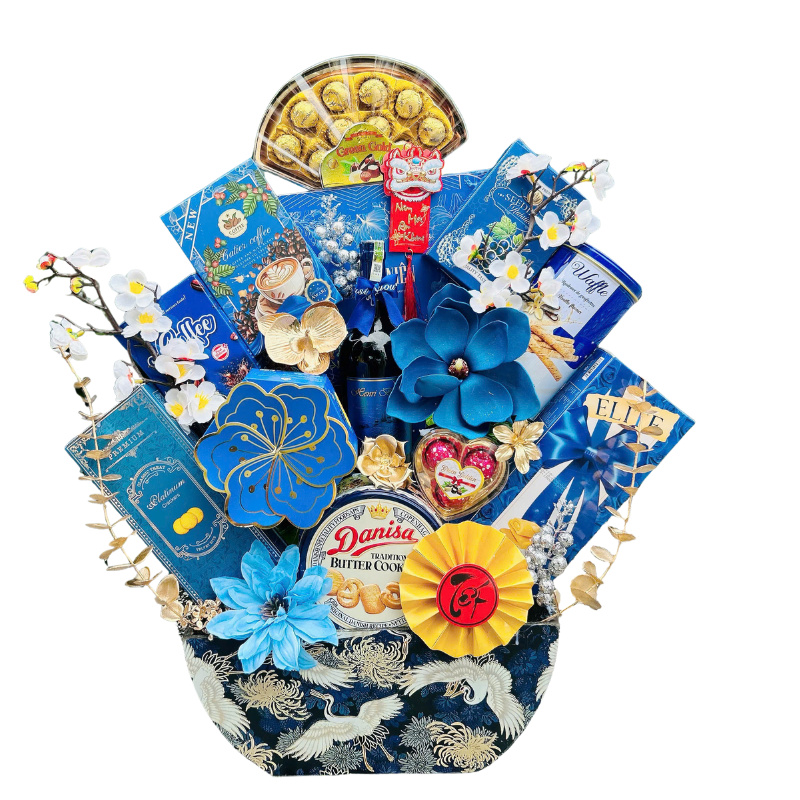 Giỏ Quà Tết Set 13 Món Cao Cấp Vàng Đỏ Xanh Dương – Quà Tặng Tết Sang Trọng – Quà Trang Trí Tết