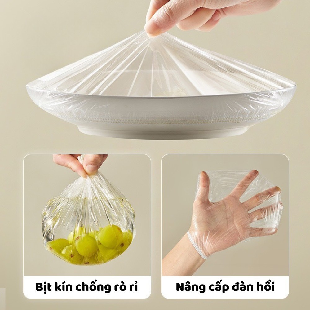 Gói 100 Màng Bọc Thực Phẩm Dạng Rút Siêu Dai Có Nắp Đậy Kính 30X14cm