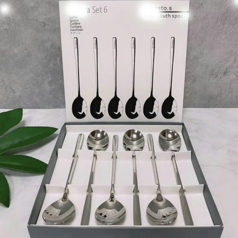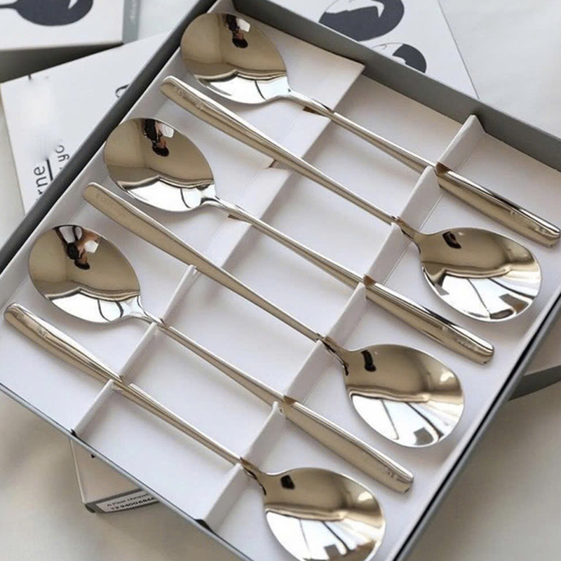 Hộp 6 Muỗng Dài Inox 304 – Thìa Inox Cao Cấp Bền Đẹp 20.5x4cm