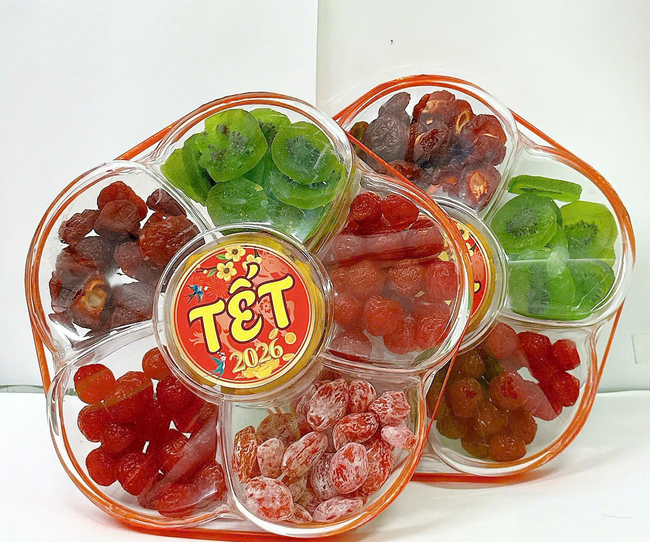 Hộp Quà Tết Set Mứt Ngũ Vị Bông Mai 800g (Ó Mai Đào Hồng, Ó Mai Đào Bố, Kiwi Sấy Dẻo, Ó Mai Mận Cơm, Xoài Sấy Dẻo) – Hộp Bông Mai Hộp Quà Tết 2026