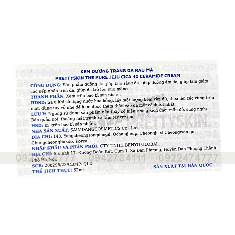 Kem Dưỡng Trắng Da Prettyskin The Pure Chiết Xuất Rau Má Ceramide Cream 52ml