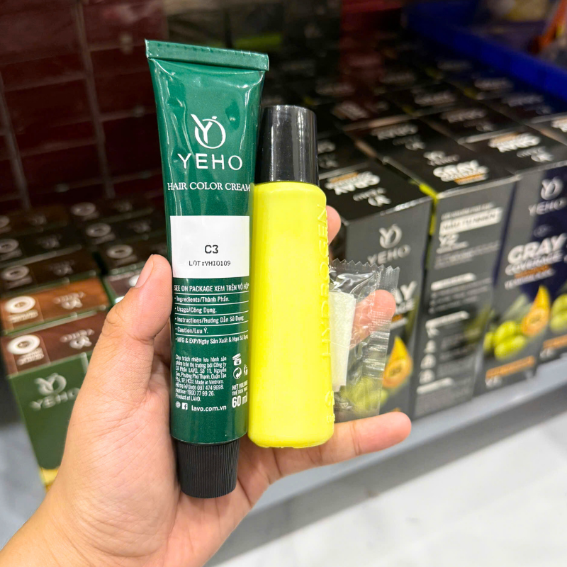 💚 KEM NHUỘM PHỦ BẠC YEHO C3 60ML (NÂU CÀ PHÊ)