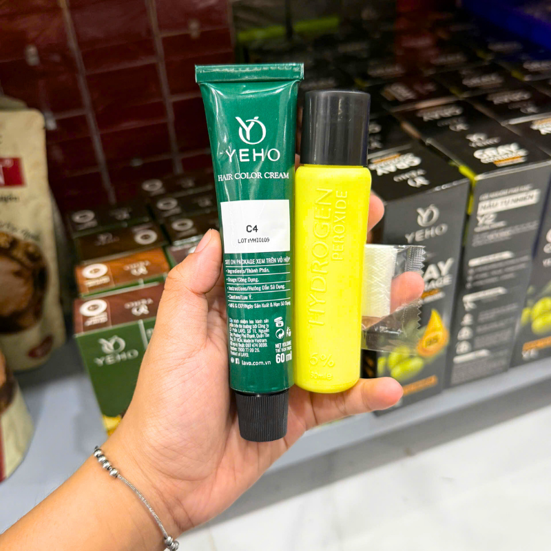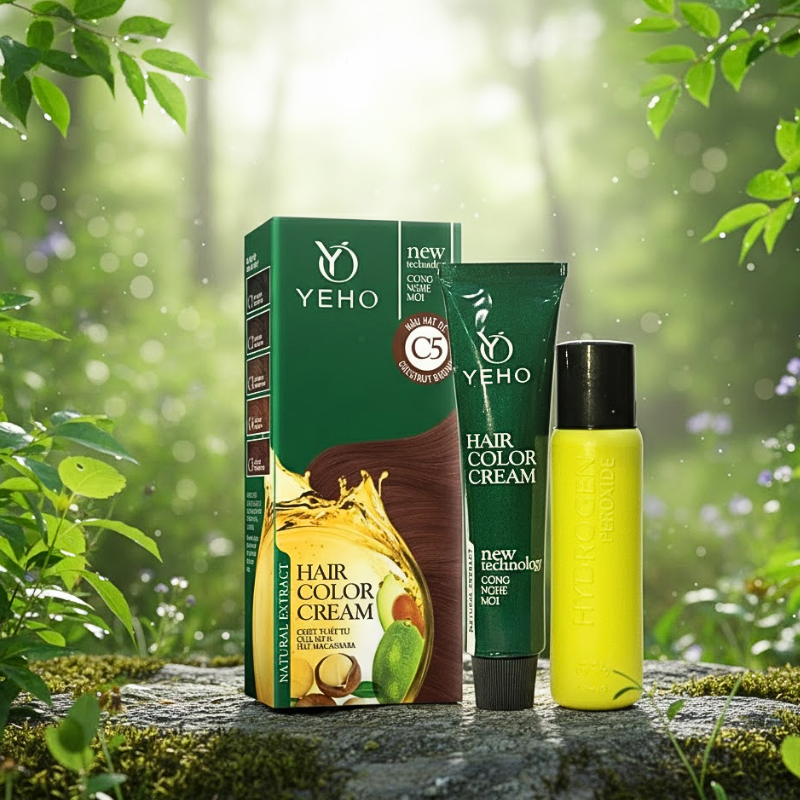 Nếu bạn đang cần một giải pháp tiện tại nhà, lên màu nâu hạt dẻ tự nhiên, che phủ tóc bạc gọn gàng mà vẫn giữ tóc trông mềm mượt thì YEHO C5 là lựa chọn rất đáng thử. Set gồm kem nhuộm + oxy trợ nhuộm, thao tác đơn giản, phù hợp cho người bận rộn nhưng vẫn muốn tóc nhìn trẻ trung, chỉn chu.
