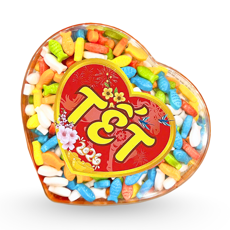 Kẹo Ngũ Sắc Trái Cây – Kẹo Cứng Hộp Trái Tim 350g Hộp Quà Tết 2026
