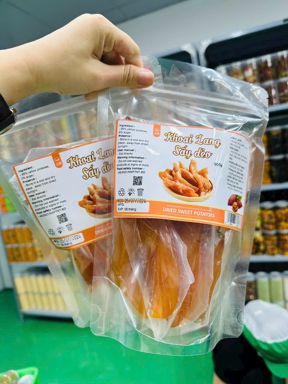 Thành Phần: khoai lang 98%, đường, dầu thực vật