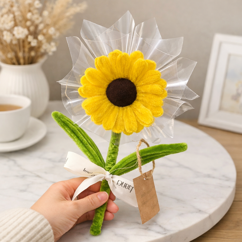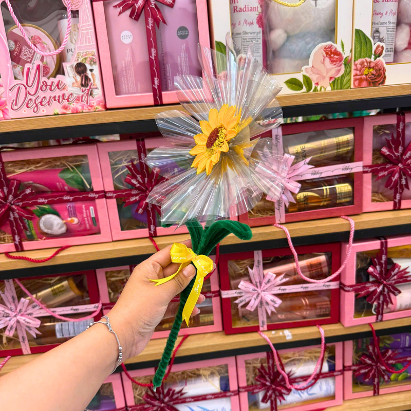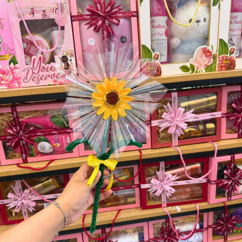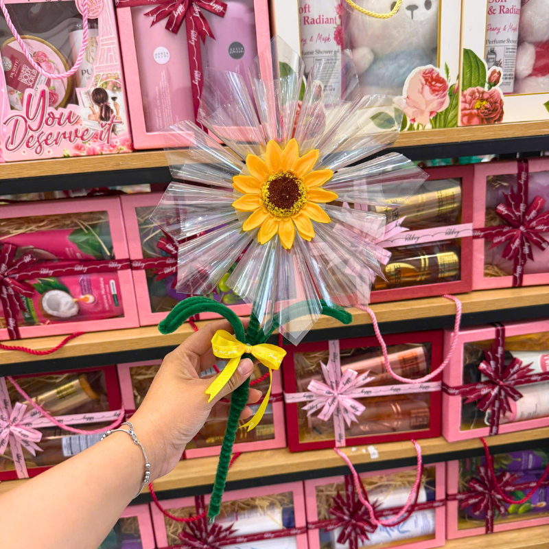[Không Đèn Chớp] Hoa Gài Tiền – Hoa Gắn Tiền – Hoa Đựng Tiền Hướng Dương Trong Suốt – Hoa Sáp
