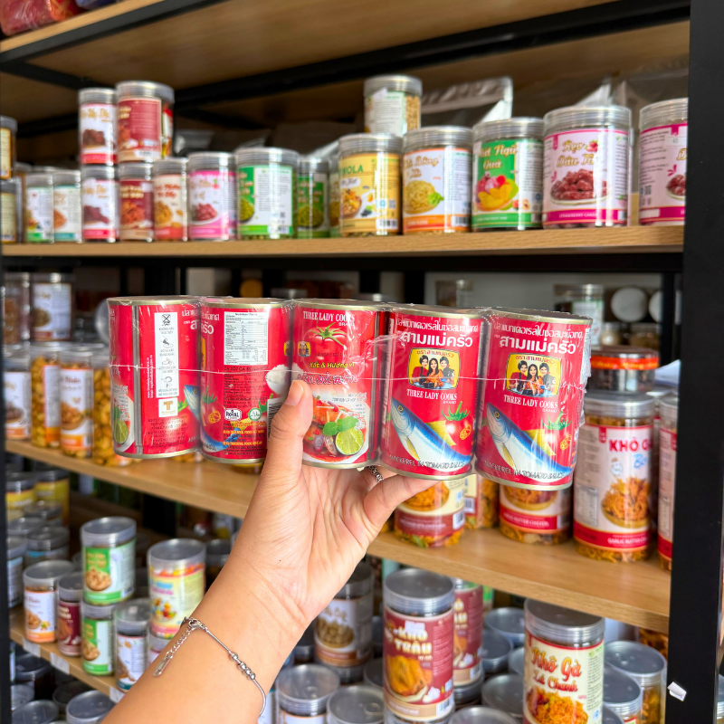 Lốc 10 Lon Cá Mòi Xốt Cà Chua Khui Muỗng Lon Cao – Cá Mồi 3 Cô Gái (155g/Lon)