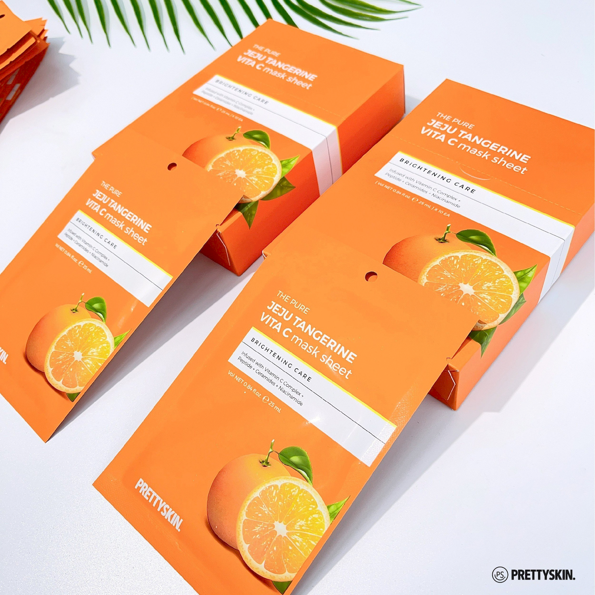 Mặt Nạ Vitamin C Prettyskin Jeju Tangerine Hộp 10 miếng