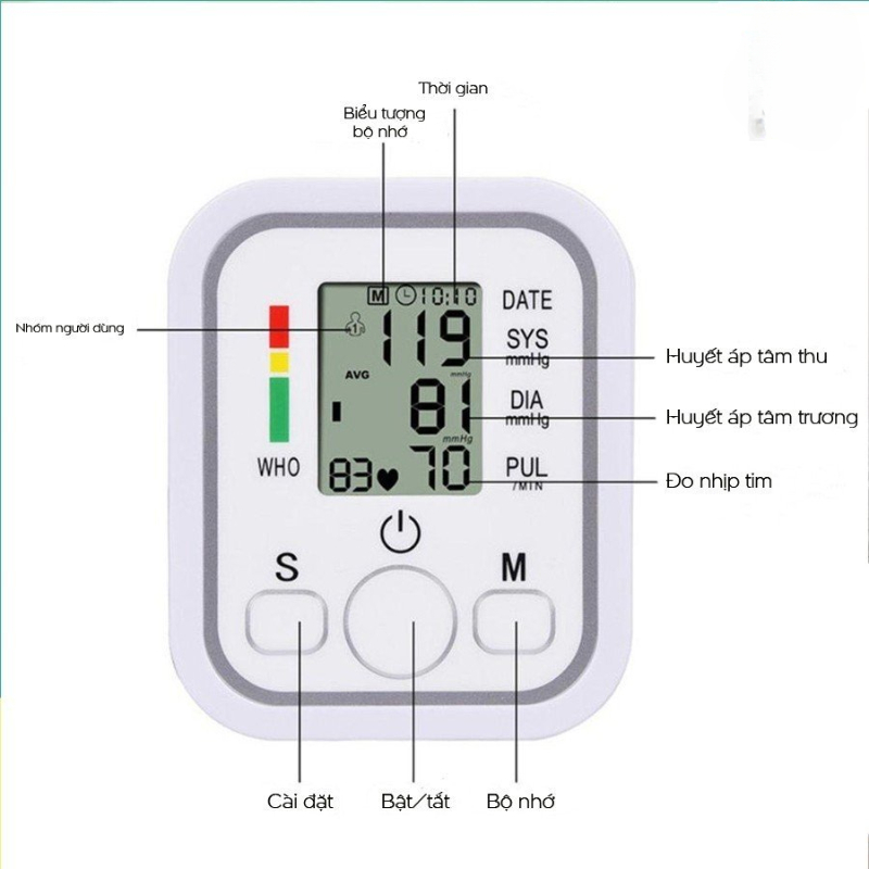 + Màn hình hiển thị rõ nét, trực quan các thông số huyết áp, nhịp tim