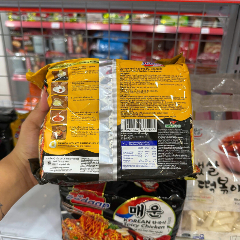 Mì Trộn Vị Gà Cay Phô Mai Hàn Quốc SEDAAP 435g – Lốc 5 Gói