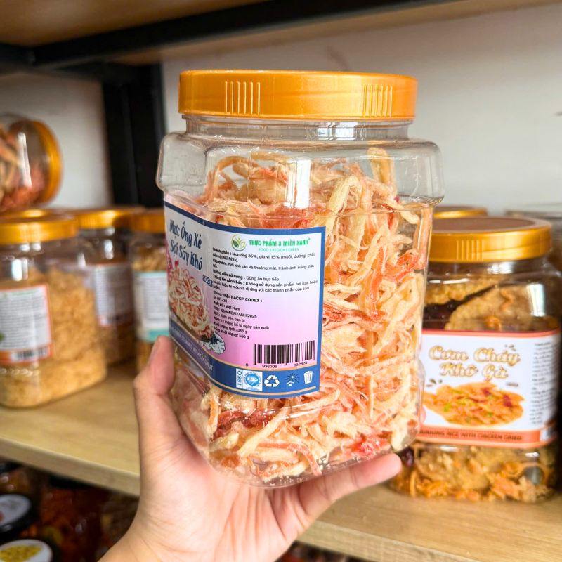 Mực Ống Xé Sợi Sấy Khô – Mực Dừa Thơm Ngon 500g – Hộp Lớn