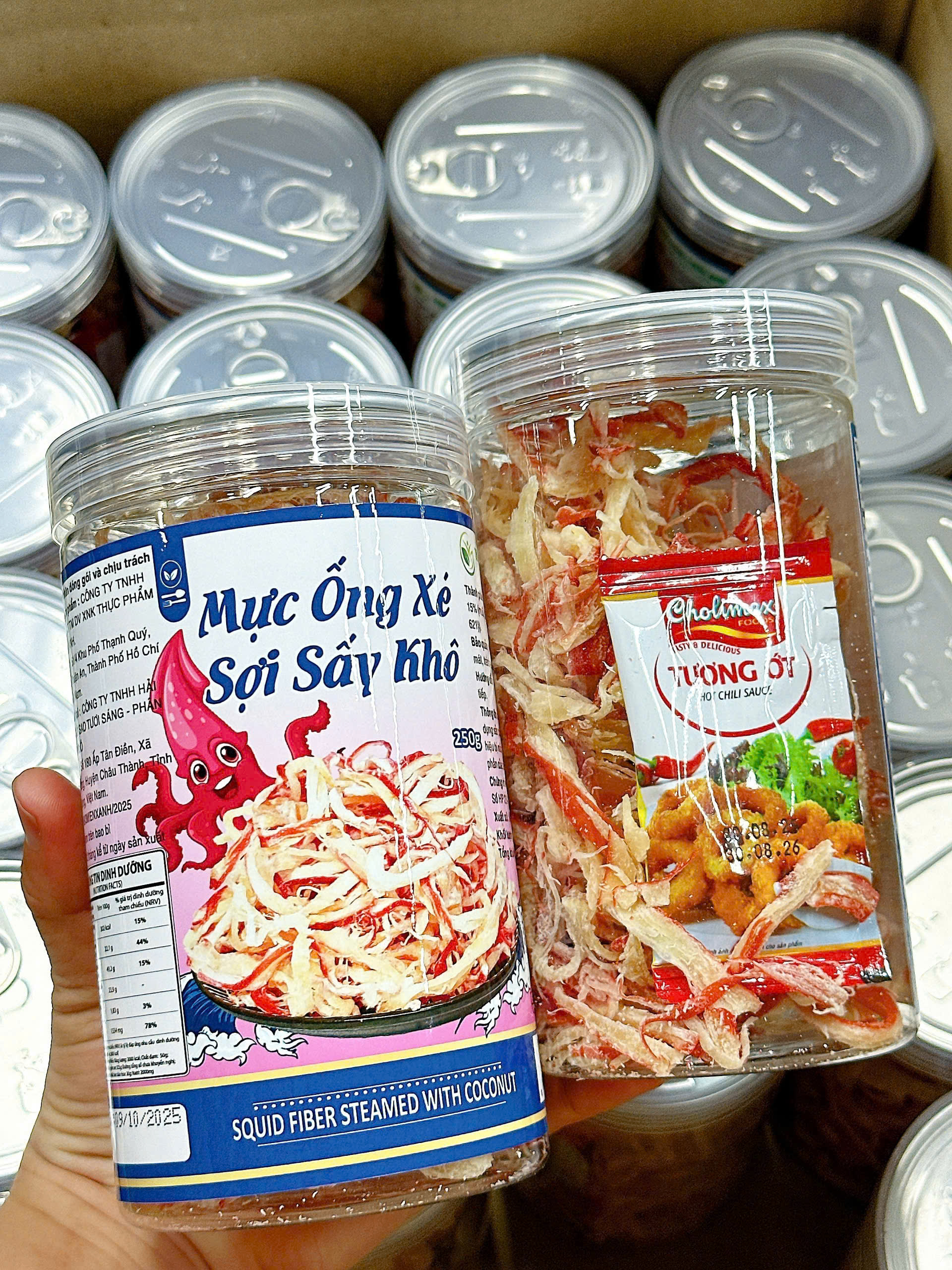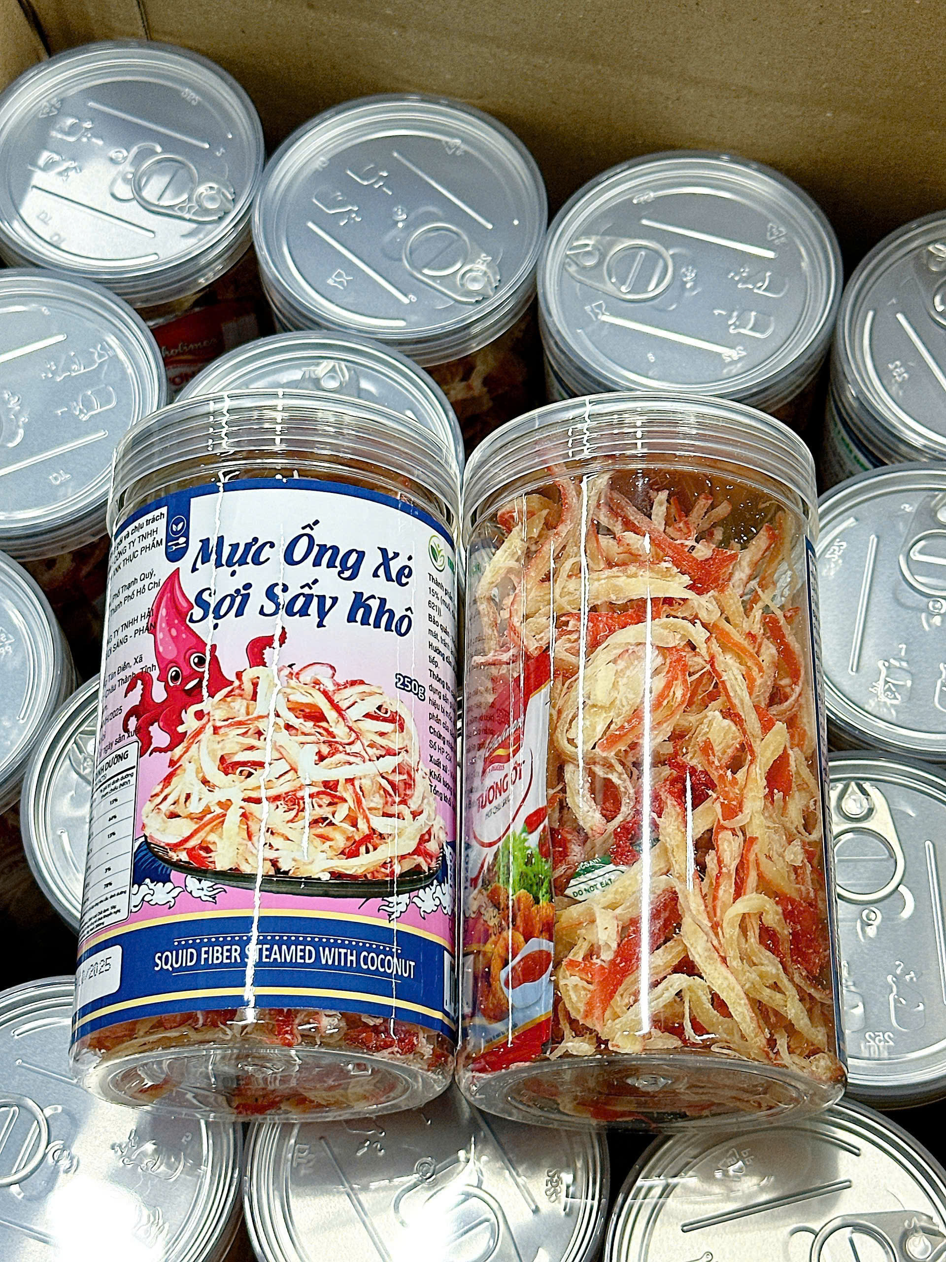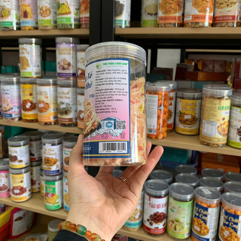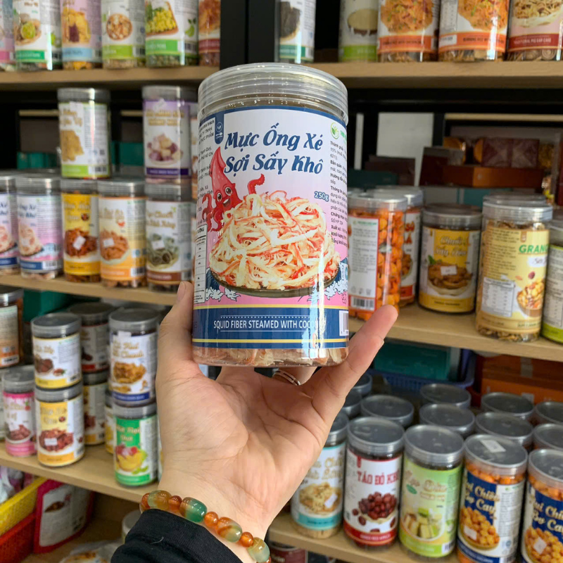 Mực Ống Xé Sợi Sấy Khô – Mực Dừa Xé Sợi Thơm Ngon 250g – Hũ Pet