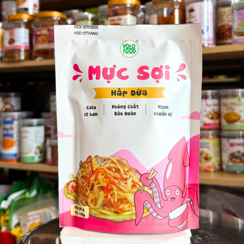 Mực Ống Xé Sợi Sấy Khô Thương Hiệu Yolo – Gói 100g