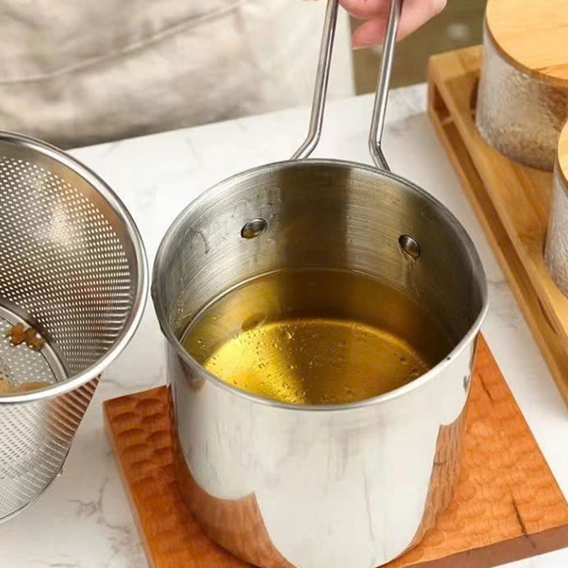 Nguồn sỉ ca Lọc Dầu Bằng Thép Có Lưới Lọc Cặn Và Tạp Chất – Nồi Chiên Ngập Dầu Mini Có Tay Cầm 1,2L 13x14x12cm