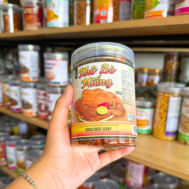 Nguồn sỉ khô Bò Miếng Thượng Hạng Thơm Ngon 200g – Hũ Pet