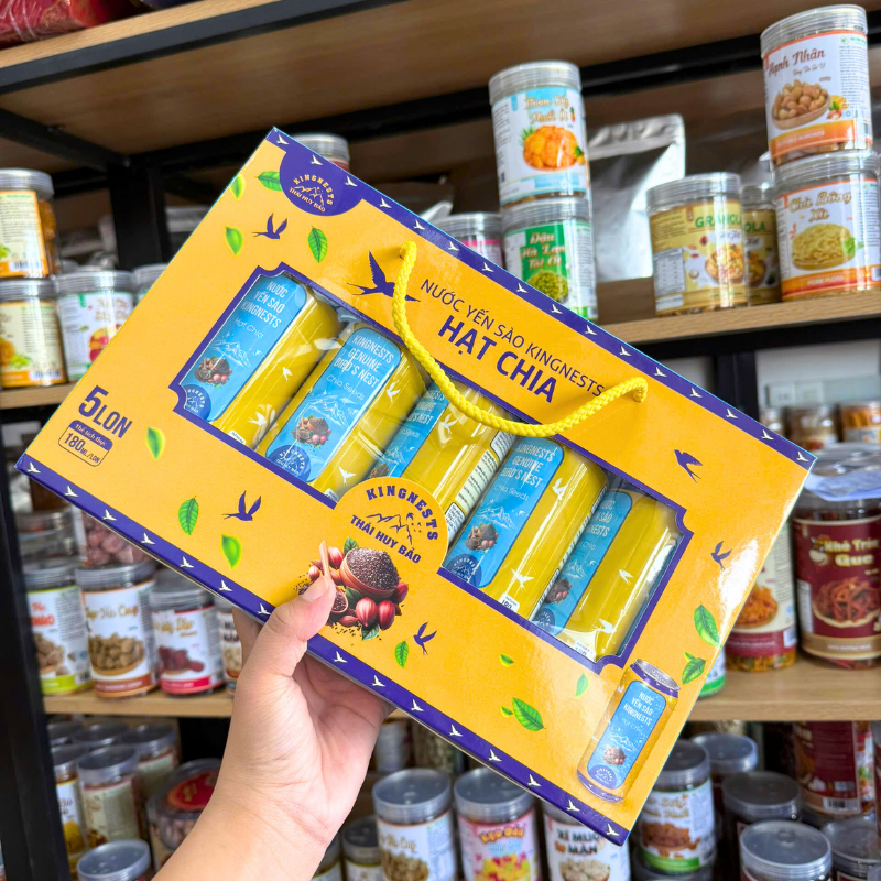 Nguồn sỉ nước Yến Sào Hạt Chia Kingnest Thái Huy Bảo – Nước Yến Sào Kingnest 5 Lon (180ml/Lon)