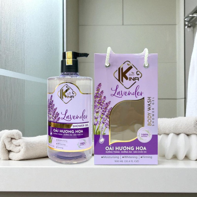 Nguồn sỉ sữa Tắm Kina Hương Nước Hoa Oải Hương 900ml – Hỗ Trợ Cấp Ẩm Dưỡng Sáng Da Mịn Màng – Tặng Kèm 1 Bông Tắm