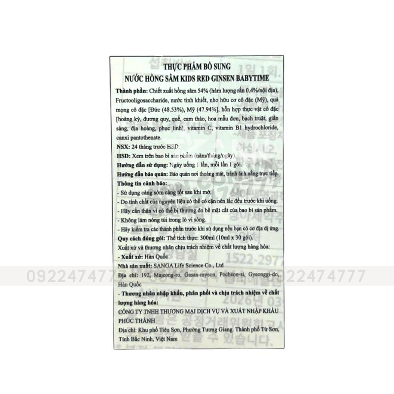 + Đối với bé trên 8 tuổi : Mỗi ngày uống 1 gói hồng sâm baby Hàn Quốc.