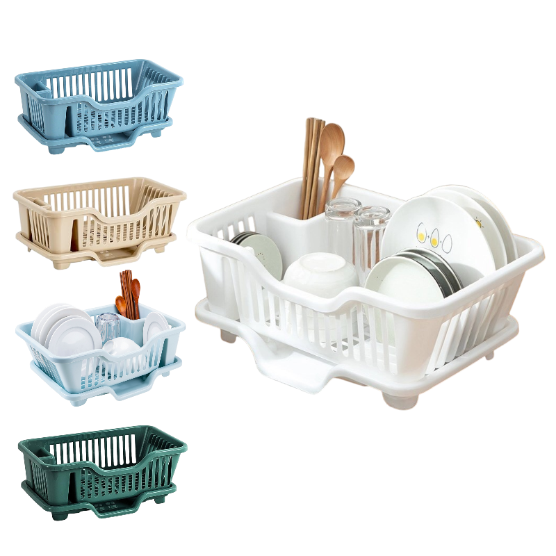 Rổ Úp Chén Đĩa Có Khay Hứng Nước – Kệ Úp Bát Nhựa PP 41x26x17cm