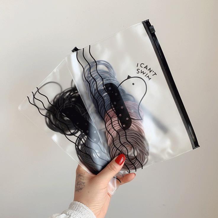 Set 100 Dây Thun Buộc Tóc Có Túi Zip 18x12cm