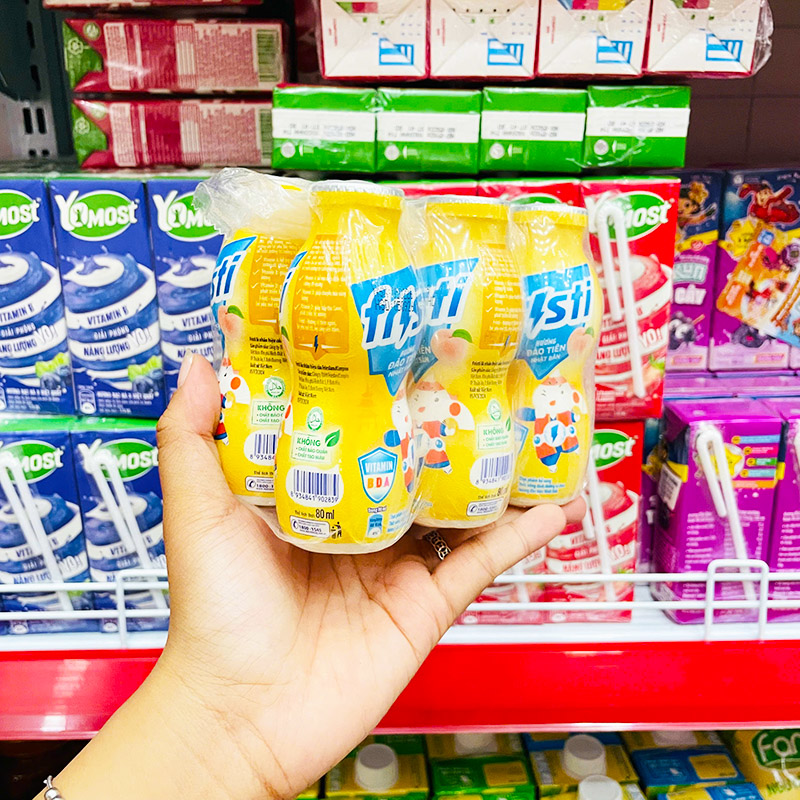 Sữa Chua Uống FRISTI Hương Đào Lốc 6 Chai (80ml/Chai) – Màu Vàng