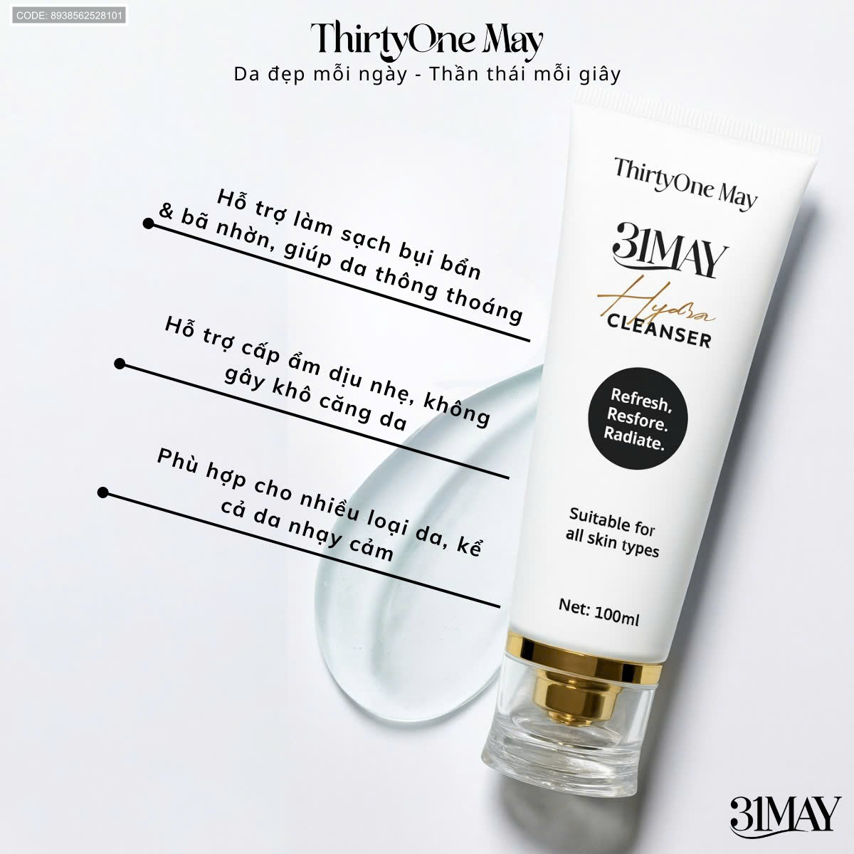 💧 SỮA RỬA MẶT 31MAY HYDRA CLEANSER – SẠCH SÂU DỊU NHẸ, DƯỠNG ẨM CĂNG MƯỚT 💧