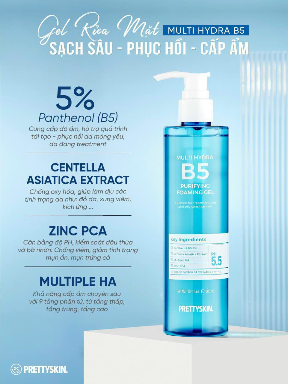 Sữa Rửa Mặt Prettyskin Multi Hydra B5 Cấp Ẩm Sạch Sâu 300ml