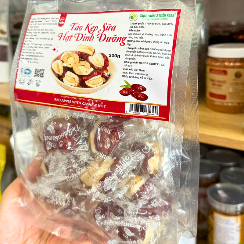 THÀNH PHẦN: Táo đỏ, hạt điều, kẹo sữa