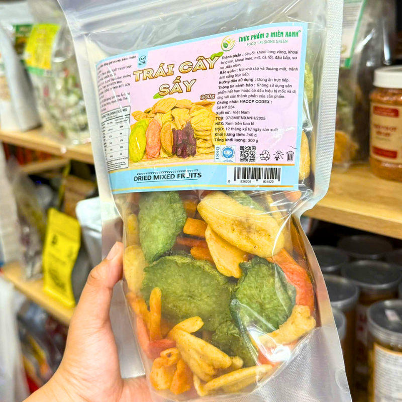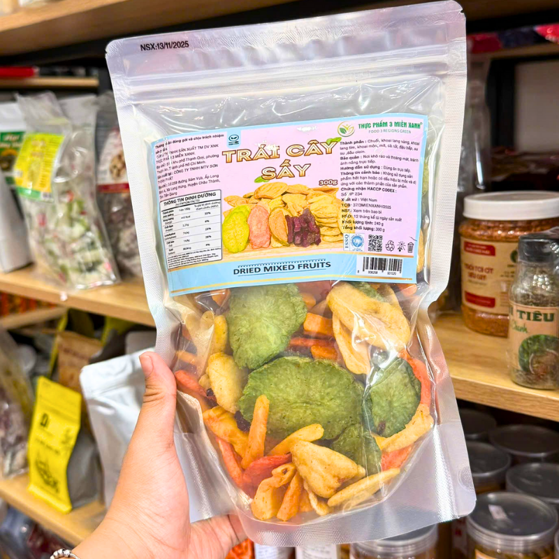 Trái Cây Thập Cẩm Sấy Giòn 300g – Túi Zip Bạc
