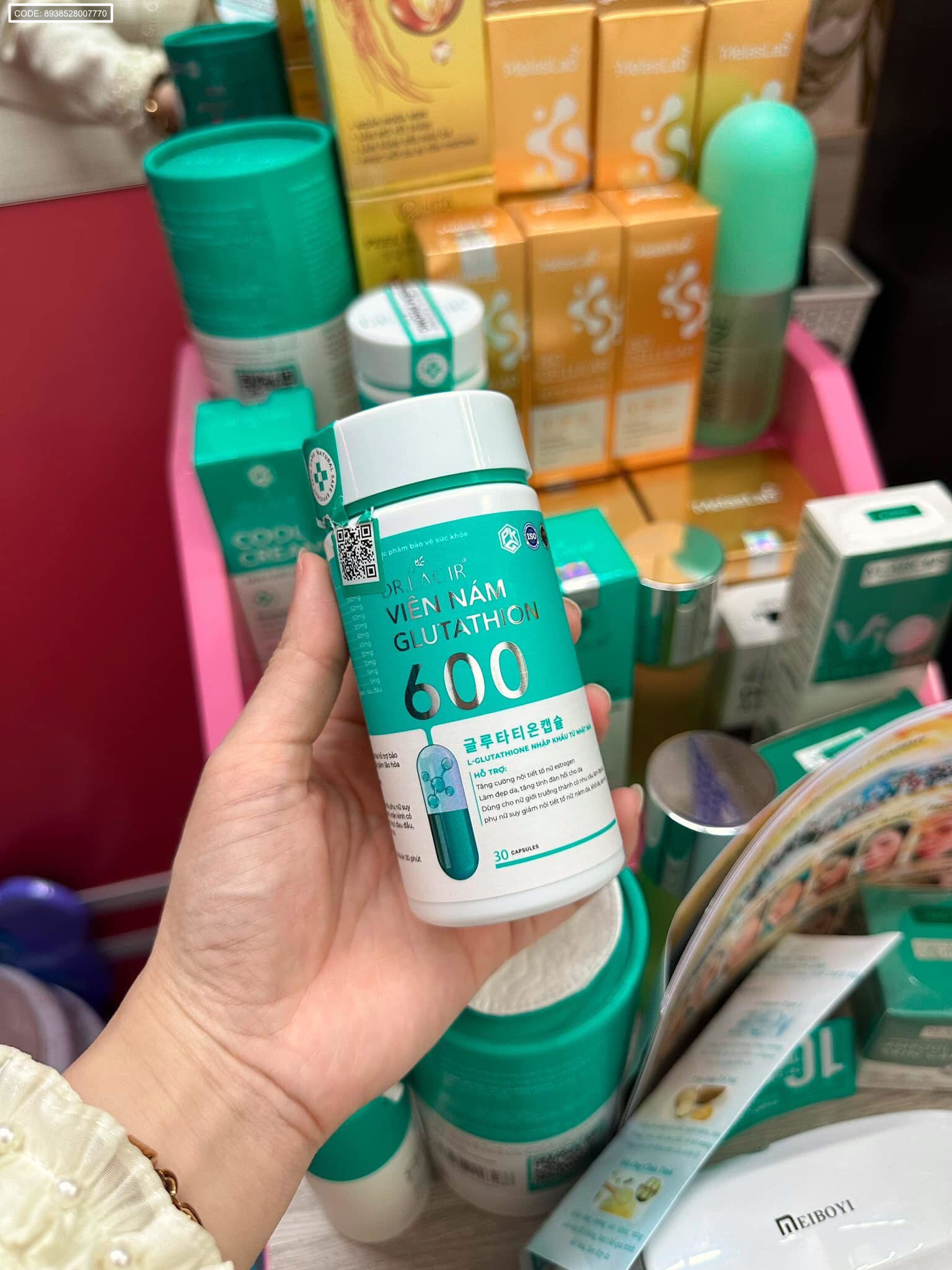 THÀNH PHẦN: L – Glutathione 700mg, collagen peptide, L-Cystin, chiết xuất lựu, vitamin C.